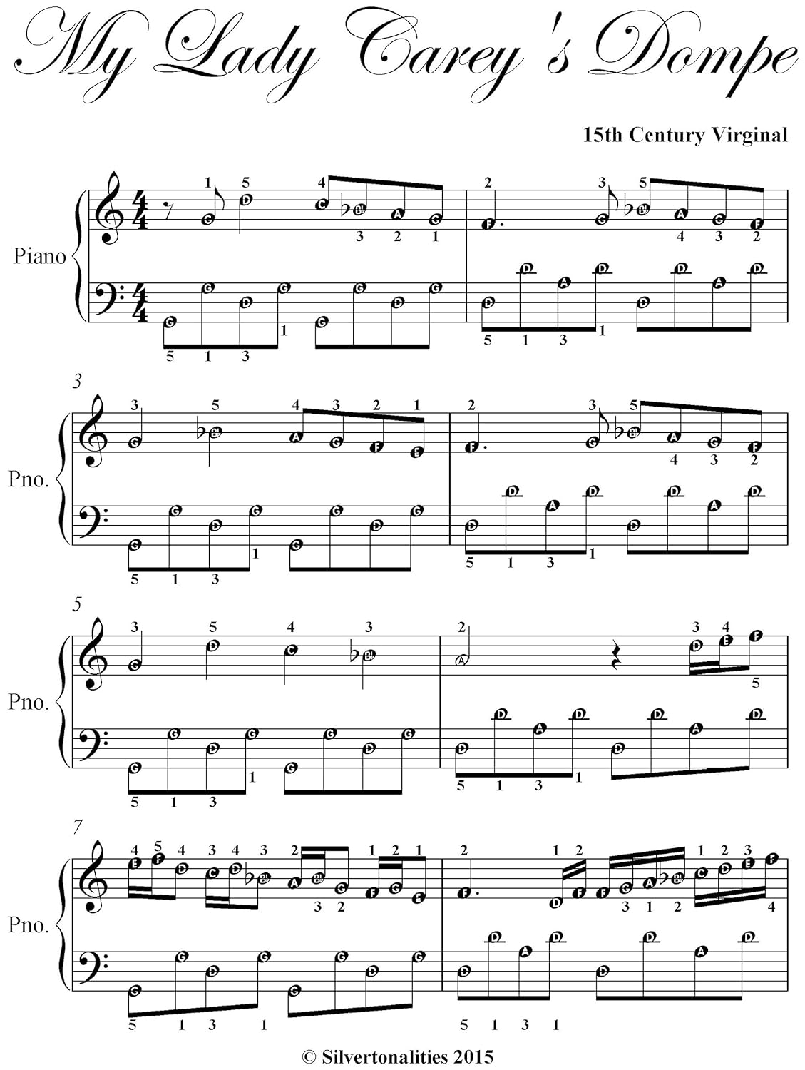 My Lady Carey S Dompe Easy Piano Sheet Music Ebook Virginal