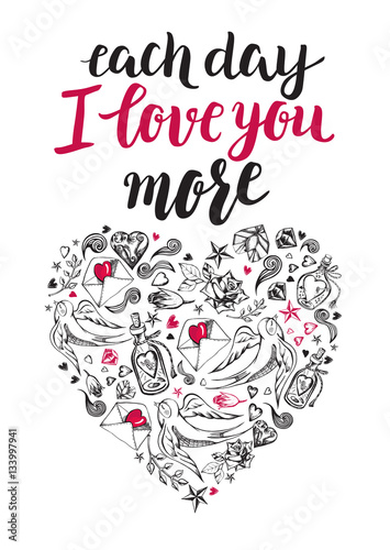 Each Day I Love You More Lettering Phrase For Postcard Banner